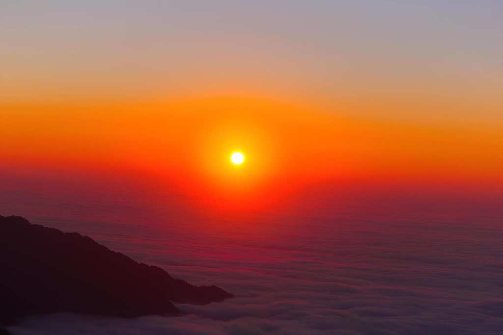 The higher one climbs, the more the landscape transforms into a rugged, mystical paradise 🌌. At the summit, marked by a 2,428-meter milestone (built in 2018) 🏔️, visitors are greeted by panoramic views of cloud seas ☁️ and golden sunsets 🌅.