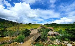 🌿 Cycle through scenic villages beneath the majestic Tay Con Linh mountain range.